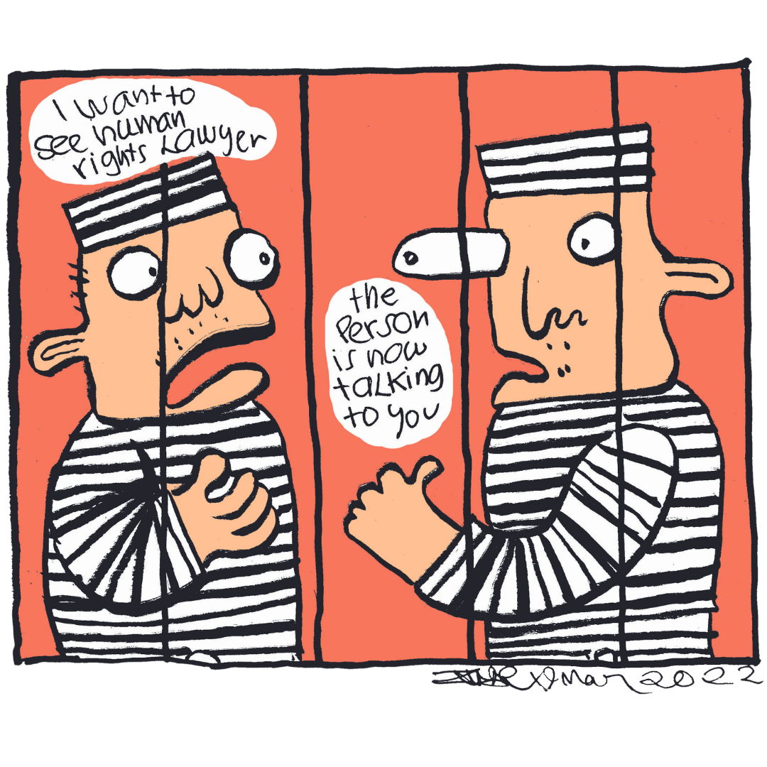 لدي أكثر من 40 موكلًا تُنتهك حقوقهم الأساسية في السجن. يضطر موكليّ إلى العيش في مساحة صغيرة مزدحمة تضم أكثر من 100 شخص، في حين أنها لا تسع أكثر من 50 شخصًا. المساحة ضيقة جدًا لدرجة أنهم لا يستطيعون التحرك ويلتصقون ببعضهم البعض. يتم إجبار بعض موكلي على التخلص من مياه الصرف الصحي، ويتعرض آخرون للتعذيب الوحشي، ويتم تقييد آخرين بسلاسل حديدية. اضطر أحد موكلي، الذي كان يبلغ من العمر 20 عامًا تقريبًا، إلى قضاء يوم وليلة في الحبس الانفرادي مع تقييد قدميه لاحتفاله بعيد ميلاد الجنرال أون سان، وهو سياسي بورمي راحل. عندما رأيته في قاعة المحكمة، كانت قدميه منتفختين بشدة بسبب الاحتكاك بالسلسلة. أصيبت جروحه بالعدوى وكان يعاني من حمى شديدة. في المحكمة، كان علي مساعدته في تنظيف جروحه، سواء في قدميه أو في جسده بالكامل. وفي محكمة أخرى، لم يُسمح للسجناء بالخروج من عربة سجن صغيرة، إذ كان عليهم انتظار دورهم في المحكمة، وعندها فقط يُسمح لهم بالخروج من العربة.