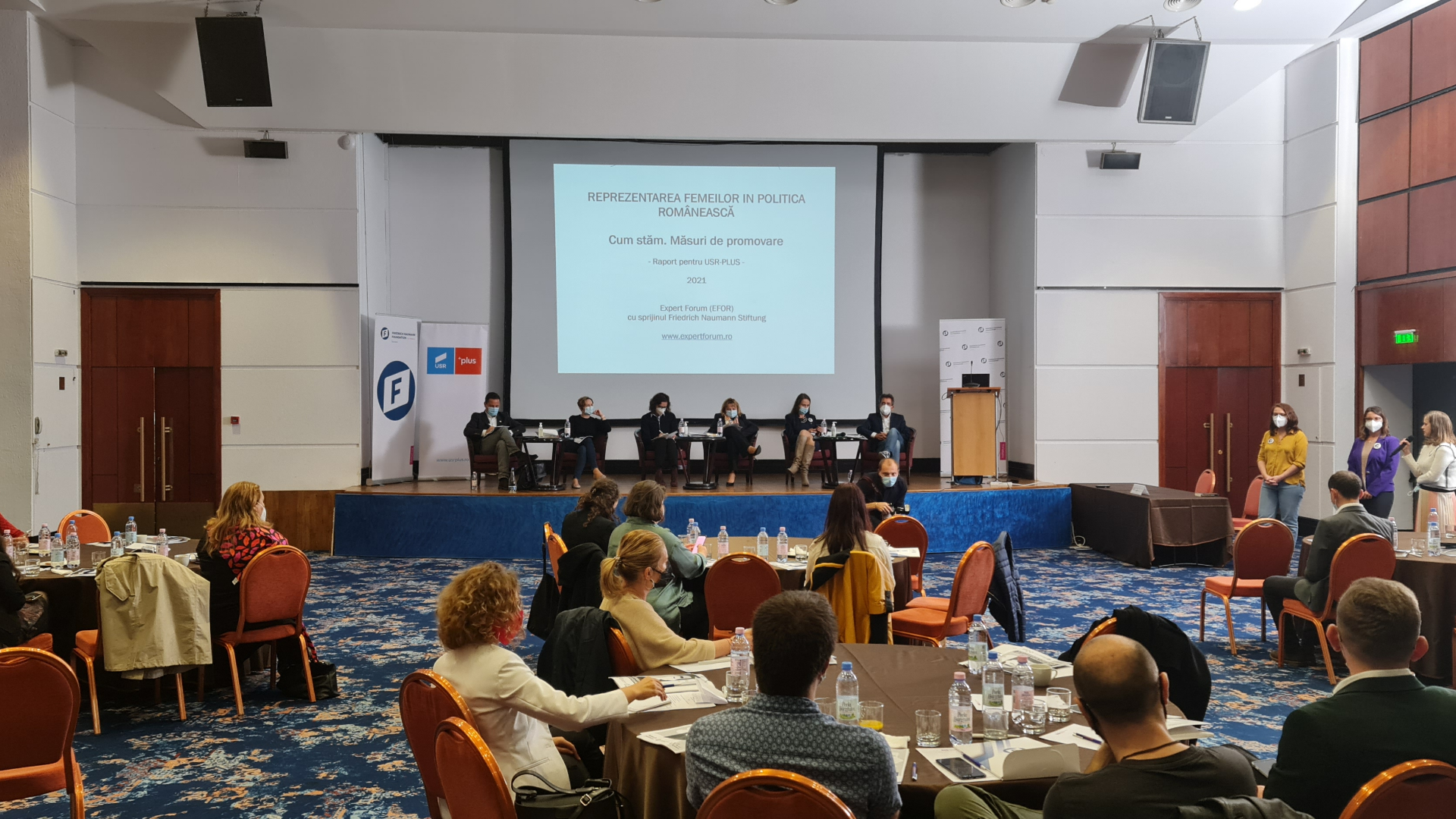 وفي نهاية 2020، عندما أحصت أول حكومة ليبرالية بقيادة فلورين سيشو وزيرة واحدة فقط من أصل 20 عضوًا في مجلس الوزراء، كان هذا سببًا كافيًا لثلاث سياسيات شابات (هن روكسانا فيلكو وأوانا دوما وألينا جيربيا) من الحزب الليبرالي، اتحاد إنقاذ رومانيا (USR) ليقمن باتخاذ إجراء، تمثل في إطلاقهن حركة "المرأة في السياسة" داخل الحزب. وبالتعاون مع مؤسسة فريدريش ناومان للحرية (FNF) ومركز الفكر المتمثل في منتدى الخبراء، أصدرت المؤسستان حينئذ دراسة تسلط الضوء على العجز الديمقراطي في البلاد، أعقبها فعاليات ومناقشات عامة.