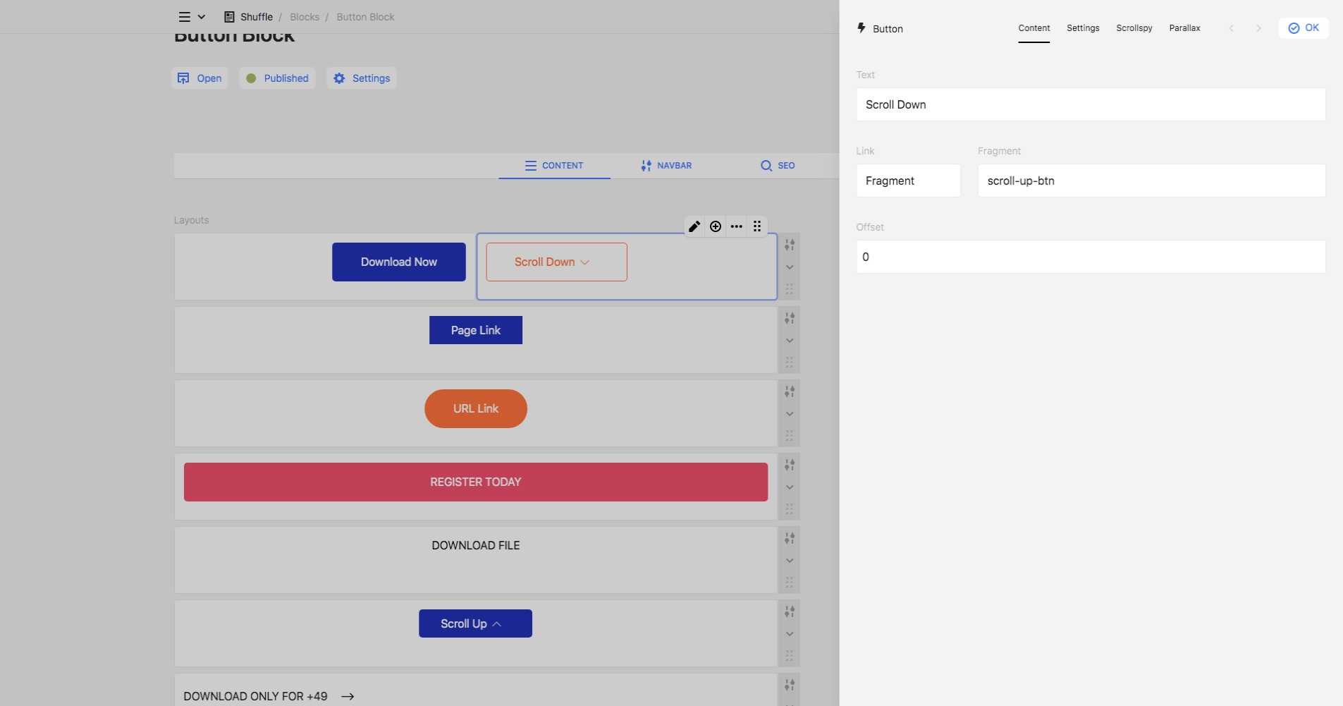 You can use buttons with various link types and designs. For example, you can link to a page or use it to download a file..