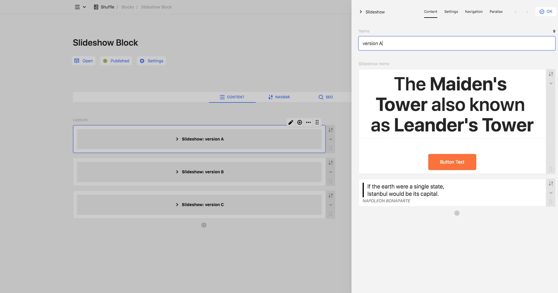 Slideshow that you can shape as you want. You can put either image, video, or just text.