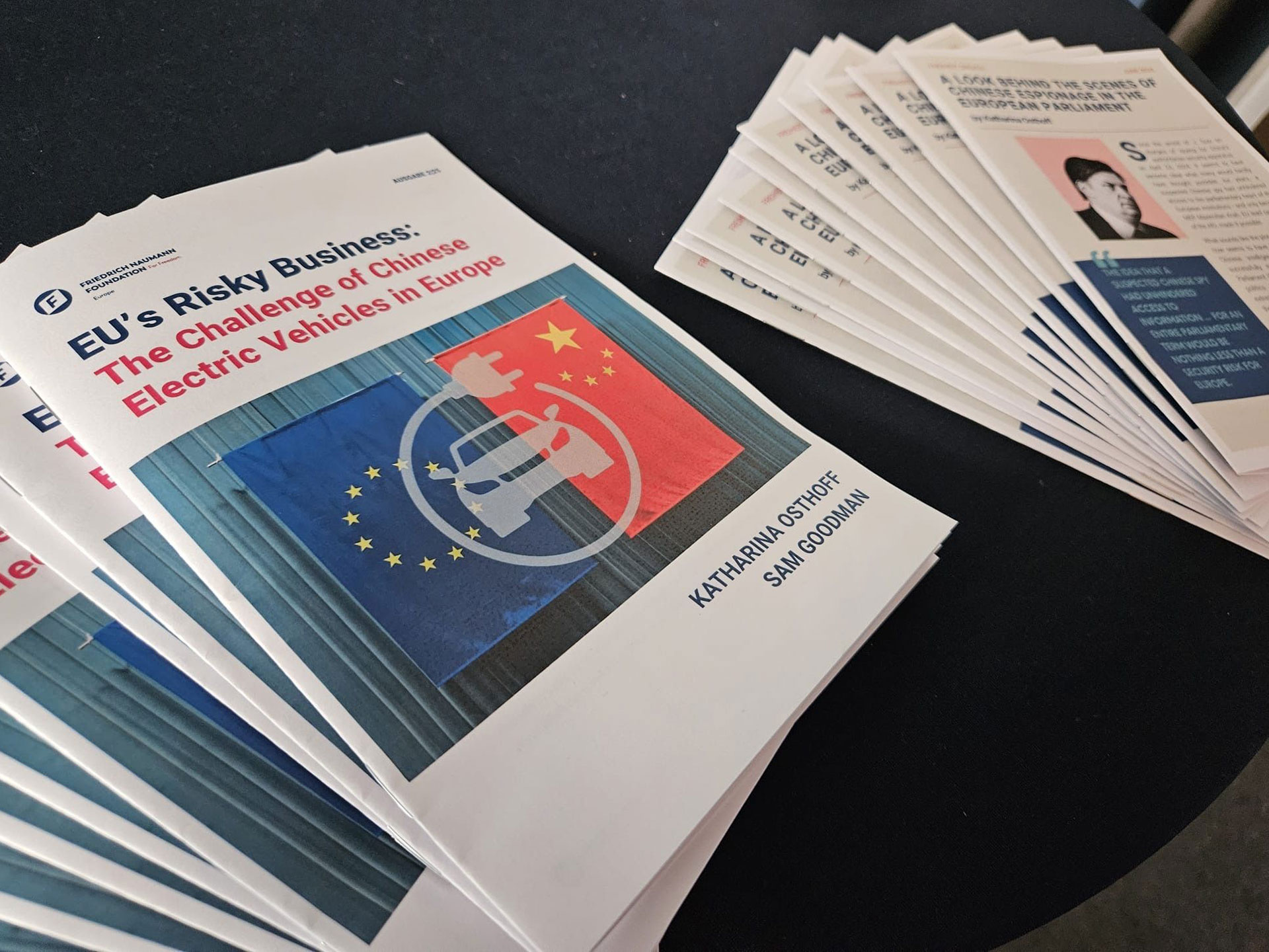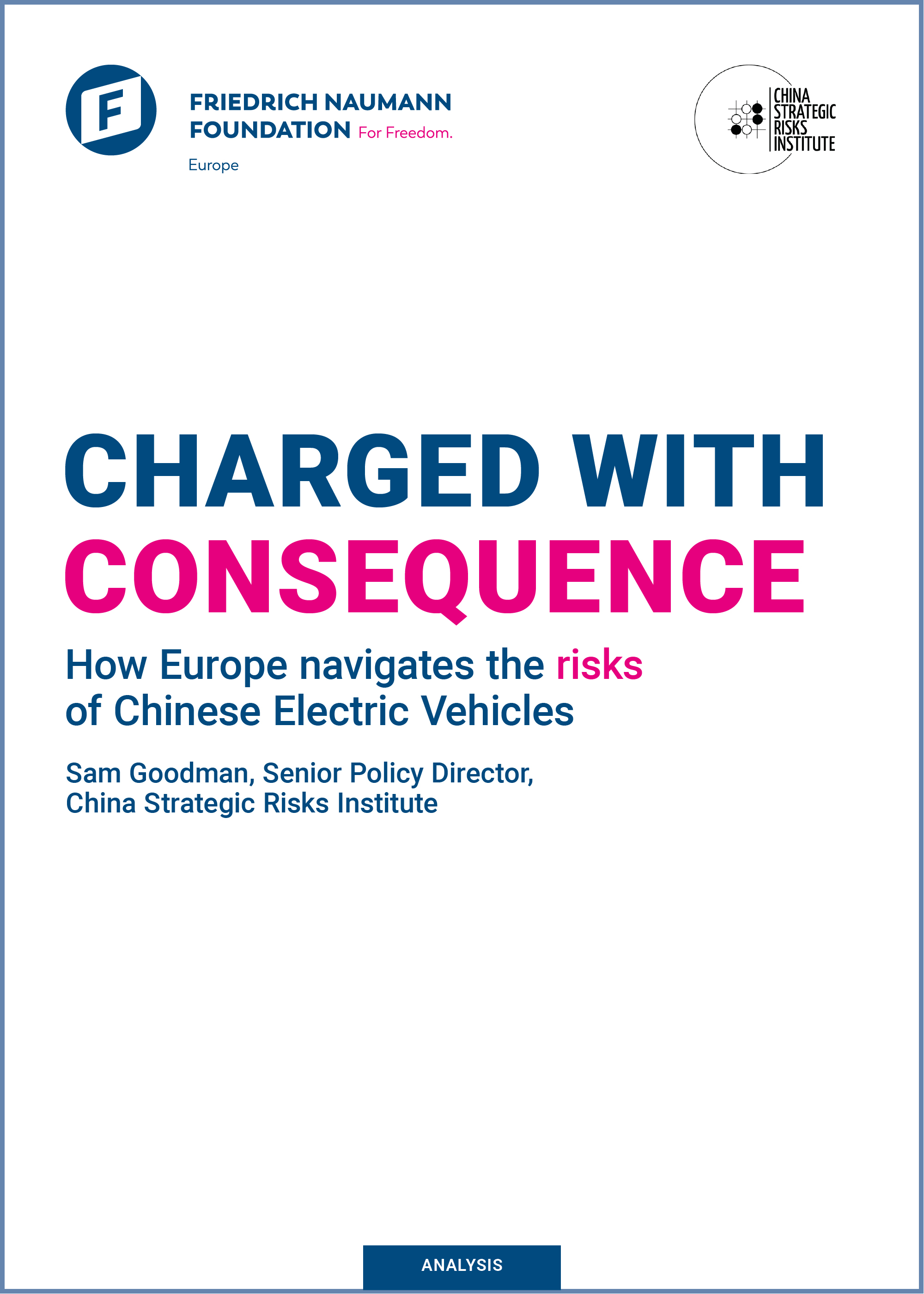 From 23 to 24 April, FNF Europe hosted two back-to-back events in Brussels to present and discuss its publication, produced in cooperation with the China Strategic Risks Institute (CSRI). The study, titled “Charged with Consequence,” examines the hidden costs of Chinese electric vehicles, from labour and human rights abuses in supply chains to economic dependencies and security vulnerabilities. It also outlines how Germany and Europe can respond strategically to the challenges. As Chinese electronic cars (electronic vehicle, EV) expand across European and global markets, the publication and its launch events explored what this shift means for Europe’s economic resilience and democratic values.