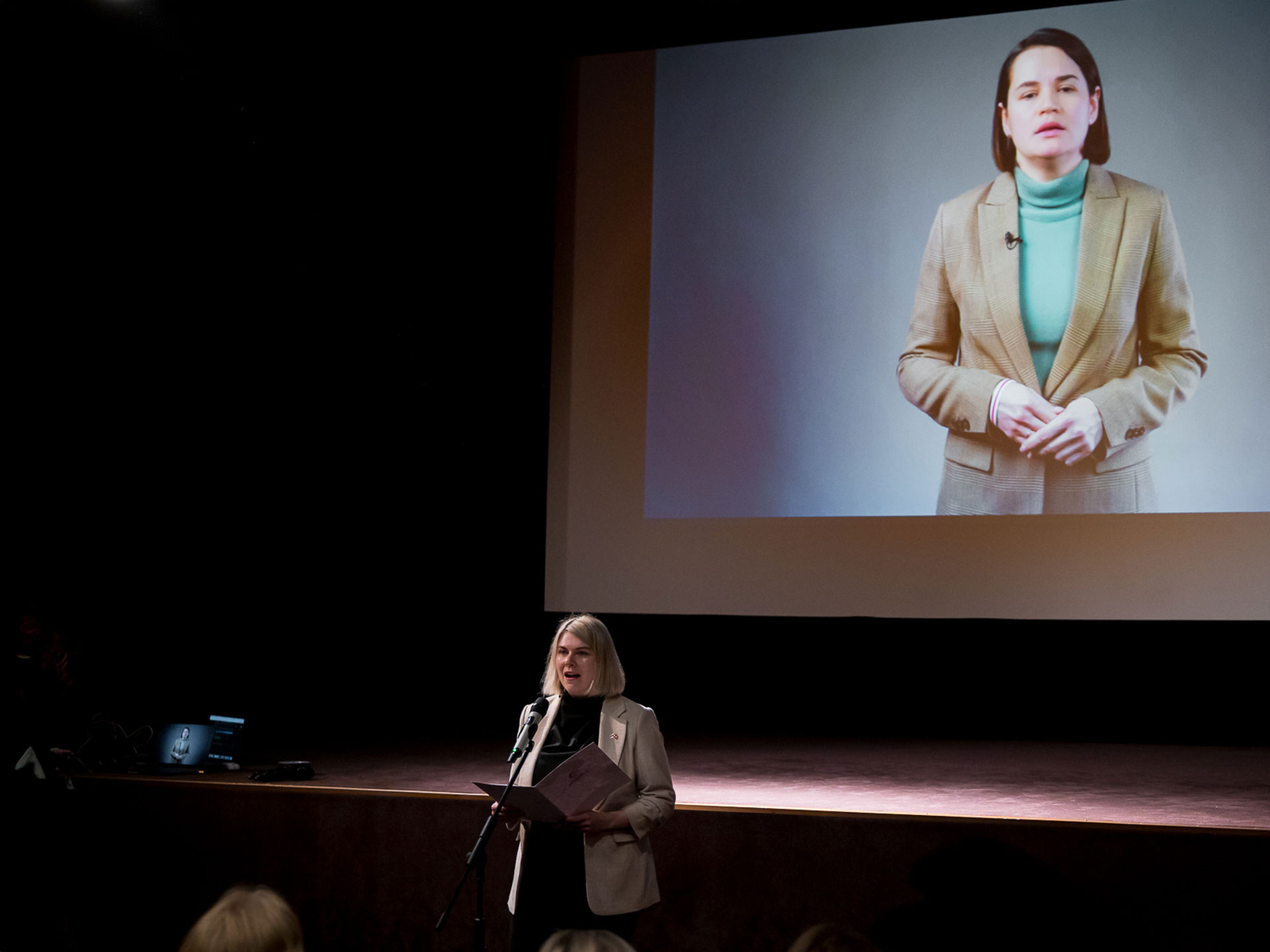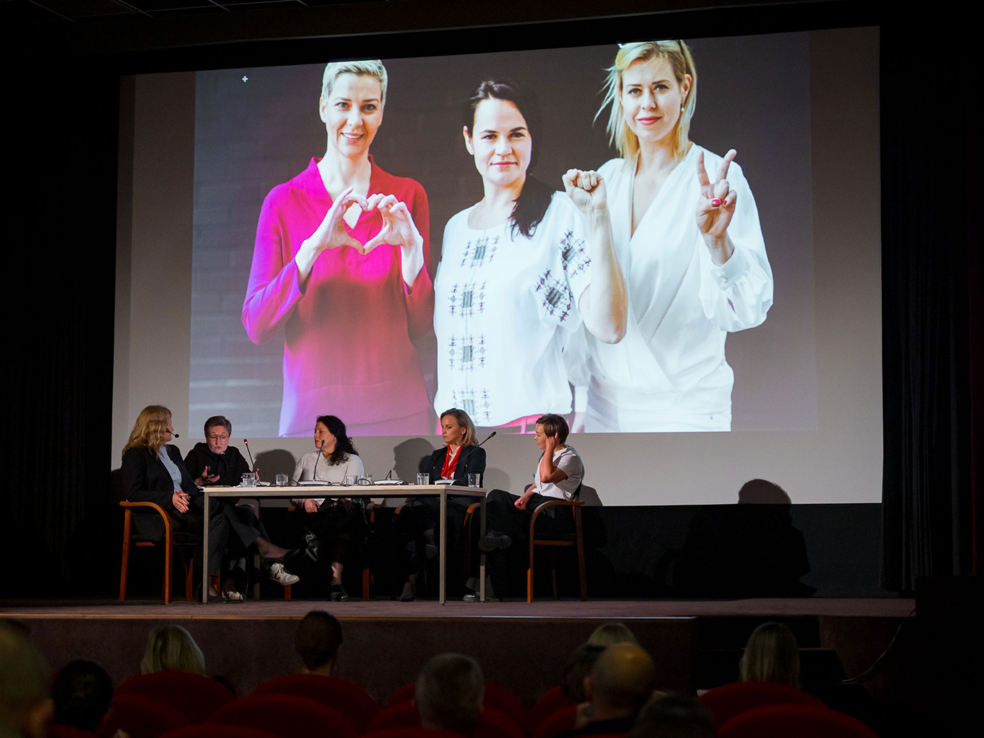 The event opened with a welcome speech by the Head of the Office of Belarus Democratic Forces in the Czech Republic and a video address from Sviatlana Cichanoŭskaja. The speakers emphasized the significance of May 15 and the broader historical context of women’s leadership in Belarusian resistance. This solo theatrical performance combined movement, poetry, and multimedia storytelling to portray a composite of the real-life experiences of Belarusian women before and after the 2020 presidential elections. The performer, a Belarusian theatre artist now based in Europe, explored themes of fear, exile, motherhood, and political awakening. The performance was met with a standing ovation. It was an emotional performance about the life of Maryja Kaleśnikava, one of the female leaders of the Belarusian protests, during her imprisonment. The second half of the evening featured a moderated discussion with 4 Belarusian women leaders. This segment emphasized the importance of preserving memory, encouraging intergenerational dialogue, and recognizing emotional labor and vulnerability as part of political resistance.
