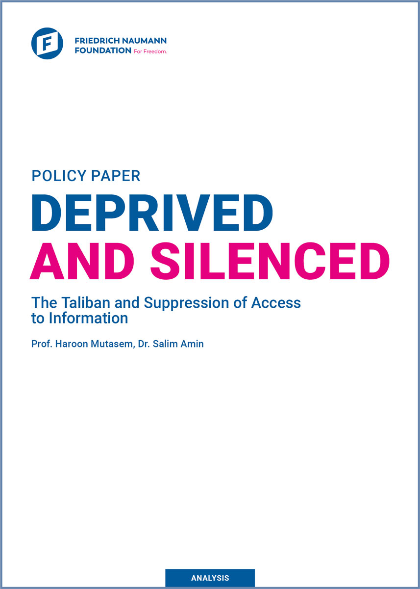 This paper, co-authored by Prof. Haroon Mutasem from the American University of Afghanistan and a Research Fellow at the Humboldt University in Berlin, and Dr. Salim Amin, Policy Advisor for Human Rights and International Rule of Law at the FNF, analyses how the Taliban's policies restrict media and information, using censorship, bans on protests and strict controls on journalists to manipulate public perception. These actions violate international legal standards and hinder humanitarian aid. The lack of transparency about the Taliban’s ties to terrorist organizations further endangers global security.