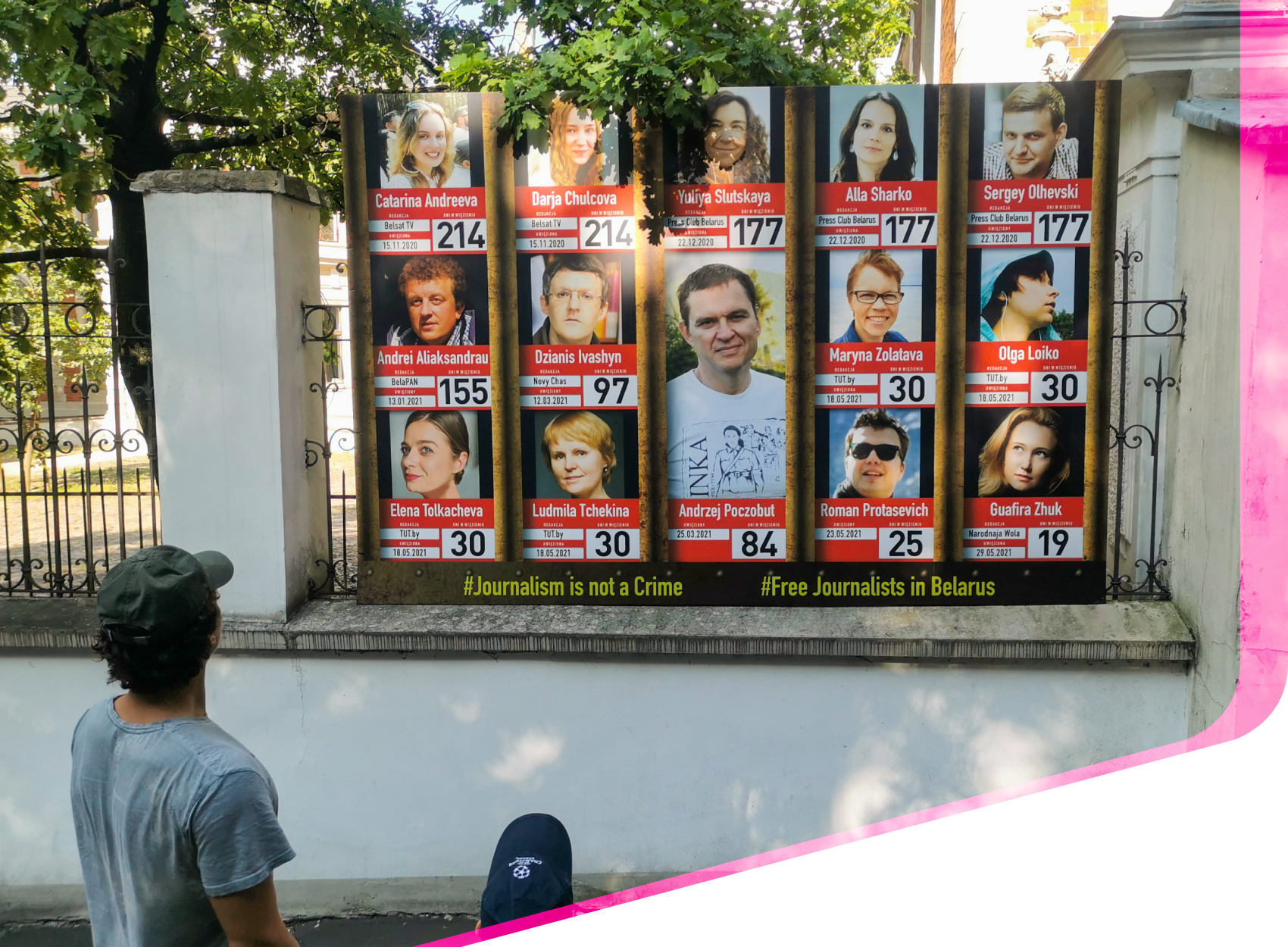 Seit 2020 hat Lukaschenkos Regime Journalisten und Journalistinnen wiederholt wegen ihrer Arbeit verfolgt. Dem belarusischen Journalistenverband BAJ zufolge nahmen Sicherheitskräfte zwischen 2020 und 2022 mehr als 600 Medienschaffende fest. Hunderte von ihnen wurden verhaftet und unter Bedingungen festgehalten, die man in keiner Weise als menschenwürdig bezeichnen kann. Derzeit befinden sich dreiunddreißig Medienschaffende in Gewahrsam.
