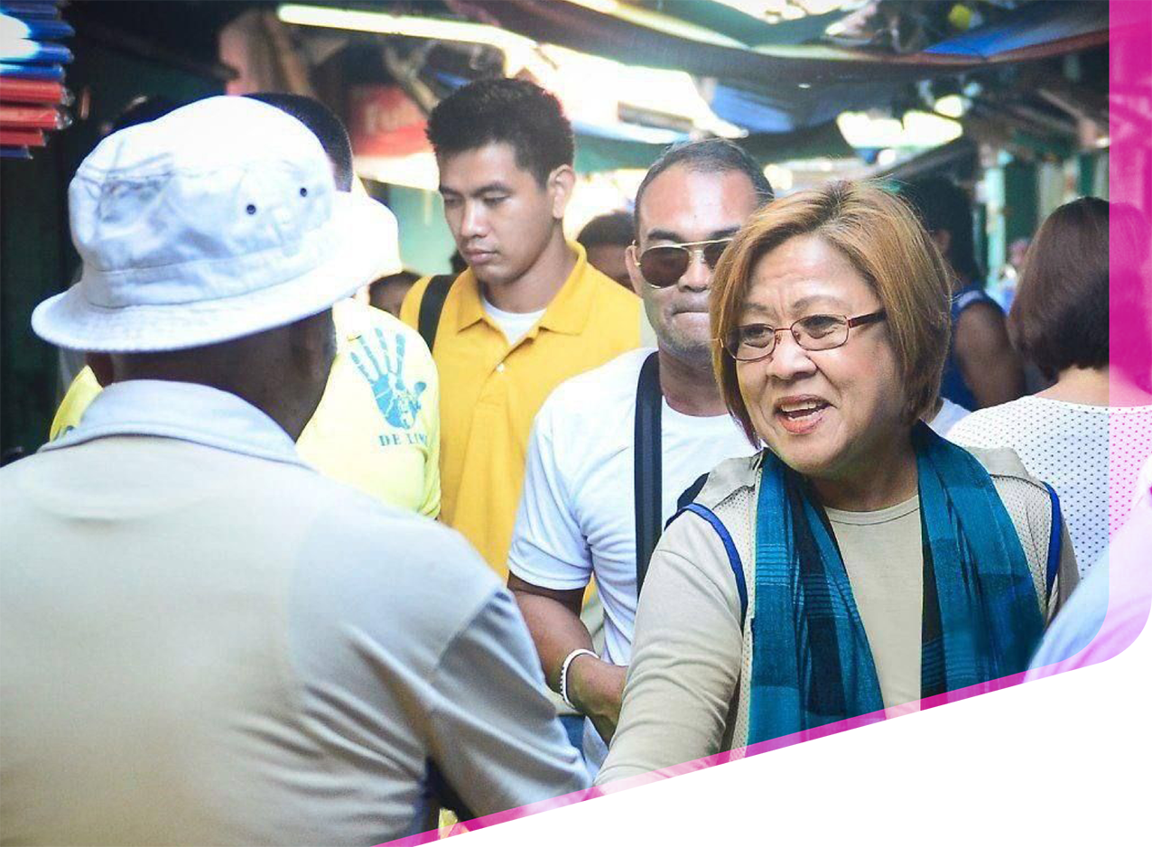 Leila M. de Lima ist eine philippinische Juristin und Menschenrechtsaktivistin. Sie war von 2008 bis 2010 Vorsitzende der Menschenrechtskommission (CHR), von 2010 bis 2015 Justizministerin und von 2016 bis 2022 Senatorin. Als Senatorin leitete Leila M. de Lima Ermittlungen zu den außergerichtlichen Tötungen im sogenannten "Krieg gegen die Drogen" ein, den der ehemalige Präsident der Philippinen, Rodrigo Duterte, nach seinem Amtsantritt im Jahr 2016 begonnen hatte. In ihrer Rolle als CHR-Vorsitzende leitete sie eine Untersuchung über Dutertes Beteiligung an außergerichtlichen Hinrichtungen während seiner Zeit als Bürgermeister von Davao City ein. Aufgrund politisch motivierter Anschuldigungen wurde sie im Februar 2017 verhaftet und befindet sich seit mehr als sechs Jahren in Haft. Im Mai 2022 zogen zwei wichtige Zeugen ihre Aussagen im Verfahren der Regierung gegen Leila M. de Lima zurück. Am 13. November 2023 wurde sie gegen Kaution freigelassen und am 24. Juni 2024 endgültig freigesprochen. Sie ist jetzt Sprecherin der Liberalen Partei.