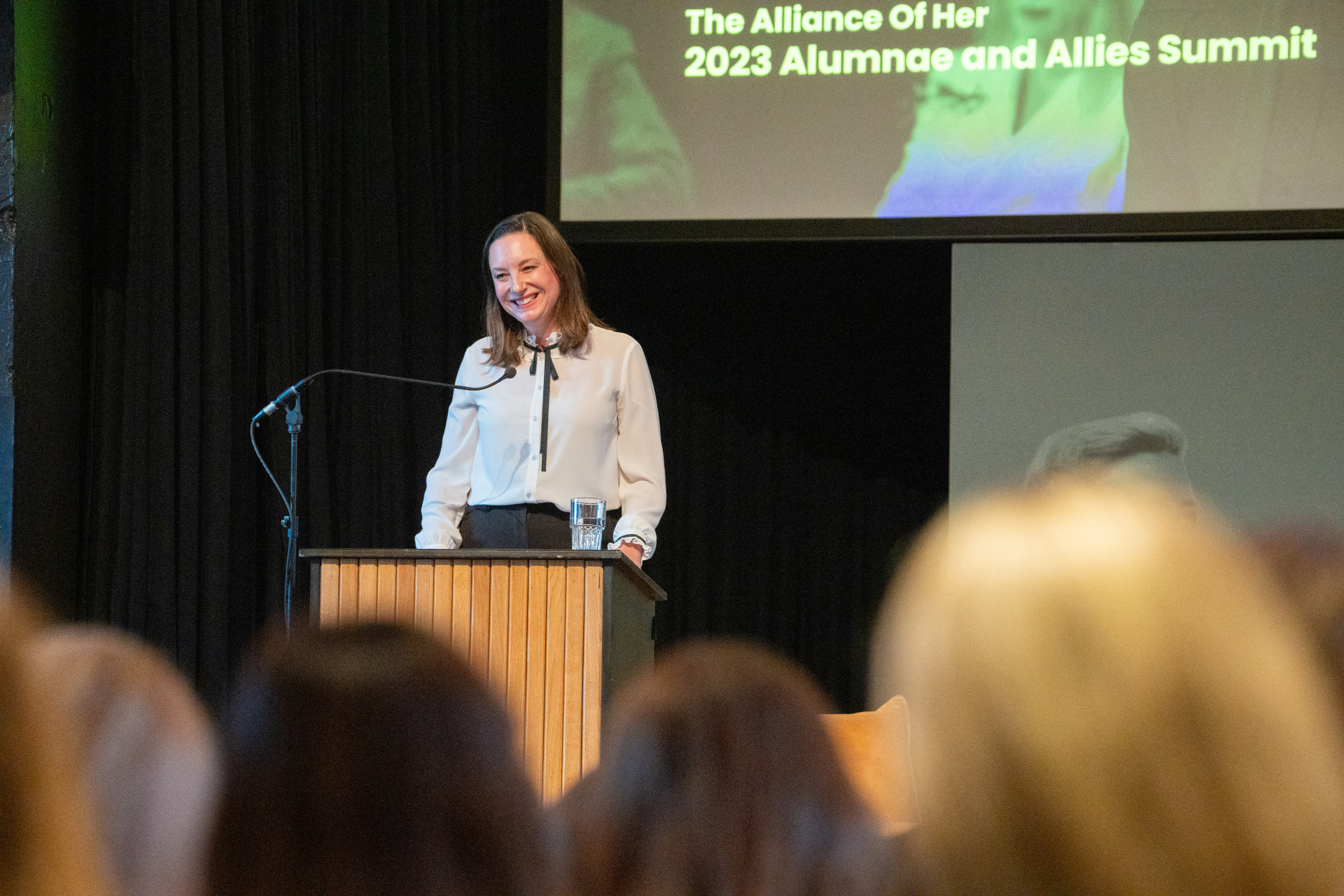Die Erfolgsgeschichten der ehemaligen Teilnehmerinnen machen Mut, dass Veränderung möglich ist. Allein beim Eröffnungspanel ergriffen vier Absolventinnen das Wort, die mittlerweile Ministerinnen in ihren jeweiligen Ländern sind. Bildungs- und Forschungsministerin Bettina Stark-Watzinger („Alliance of Her"-Abschlussjahrgang 2016), die estnische Kultusministerin Heidy Purga („Alliance of Her“-Abschlussjahrgang 2017), die schwedische Umweltministerin Romina Pourmokhtari („Alliance of Her“-Abschlussjahrgang 2022) sowie, online zugeschaltet, die dänische Ministerin für Digitales und Geschlechtergerechtigkeit, Marie Bjerre („Alliance of Her“-Abschlussjahrgang 2018).