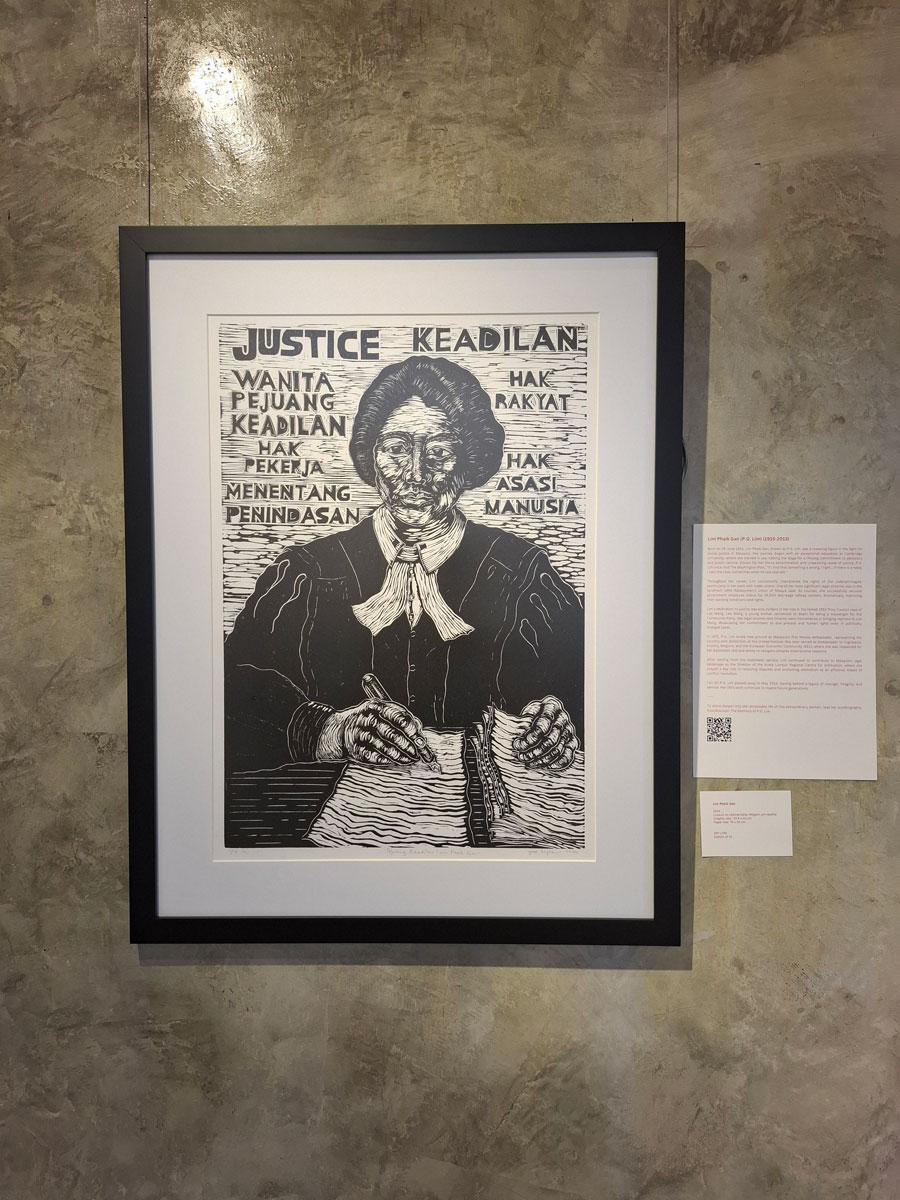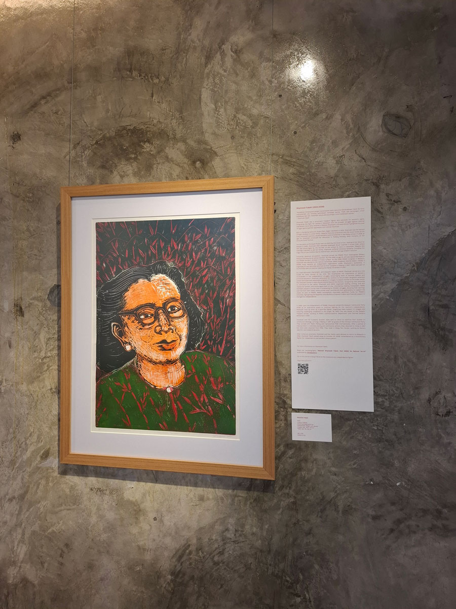 Die langjährige Partnerin von FNF Malaysia, Frau Norhayati „Yati“ Kaprawi, ist seit langem mit der bildenden Kunst, einschließlich Malerei und Druckgrafik, beschäftigt. Ihre Werke befassen sich mit Frauenthemen wie Selbstbestimmung, Stärkung der Rolle der Frau und Emanzipation. Anlässlich des malaysischen Unabhängigkeitstages entschied sich Yati für die Gestaltung von Blockdrucken, die fünf prominente weibliche Führungspersönlichkeiten Malaysias darstellen, insbesondere Frauen, die für die Unabhängigkeit Malaysias gekämpft haben. Diese Kunstwerke, darunter auch Yatis frühere Werke, wurden als Blockdrucke im Format A2 angefertigt und in einer am 24. August 2024 eröffneten Kunstausstellung ausgestellt, die drei Wochen andauerte.