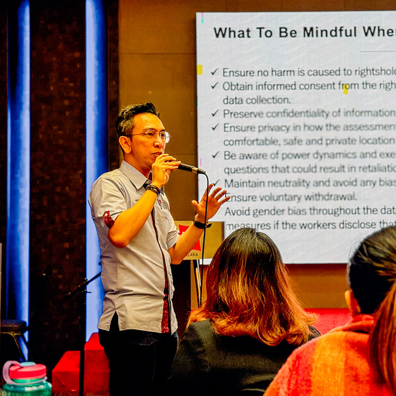Die Programme boten einen Überblick über die Initiative der Regierung, die BHR-ESG-Agenda (Wirtschaft und Menschenrechte - Umwelt, Soziales und Governance) durch den nationalen ESG-Rahmen für die Industrie (i-ESG) voranzutreiben. Sie schärfen das Bewusstsein und das Verständnis der Unternehmen für BHR-ESG, Nachhaltigkeit, Einhaltung der Sorgfaltspflicht und Berichterstattung. Sie bewerten auch die Wirksamkeit der Selbstbewertung des i-ESG-Rahmens durch Unternehmen des verarbeitenden Gewerbes. Zu den Programmen gehörten auch Seminare über HRDD. Die Schulungen basierten auf den beiden Ausgaben des Leitfadens „Wirtschaft und Menschenrechte in Südostasien“: