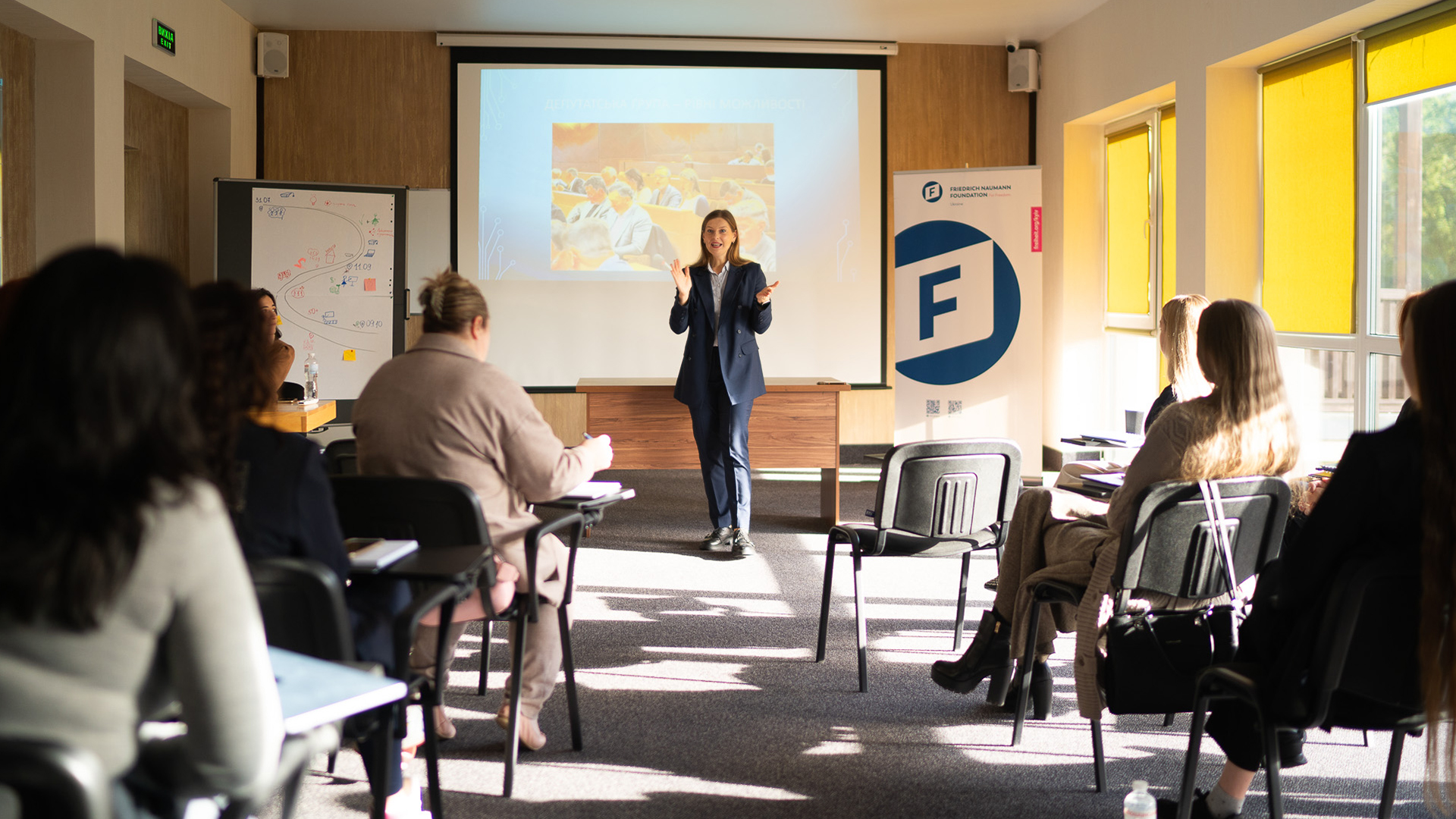 Unter Berücksichtigung der Tatsache, dass unter dem Kriegsgesetz in der Ukraine keine Wahlen möglich sind, konzentrierte sich das Programm darauf, den Teilnehmerinnen die notwendigen Führungskompetenzen und Instrumente zu vermitteln, die erforderlich sind, um nicht nur zukünftige Wahlen zu gewinnen, sondern bereits jetzt Führungsaufgaben wahrzunehmen. Zielgruppe des Programms waren ambitionierte Mitglieder liberaler politischer Parteien und Bewegungen, Vertreterinnen von NGOs sowie lokale Verwaltungsangestellte. Das Training bestand aus drei intensiven Modulen, sowohl präsenz- als auch onlinebasiert, von denen jedes einen eigenen Schwerpunkt hatte: