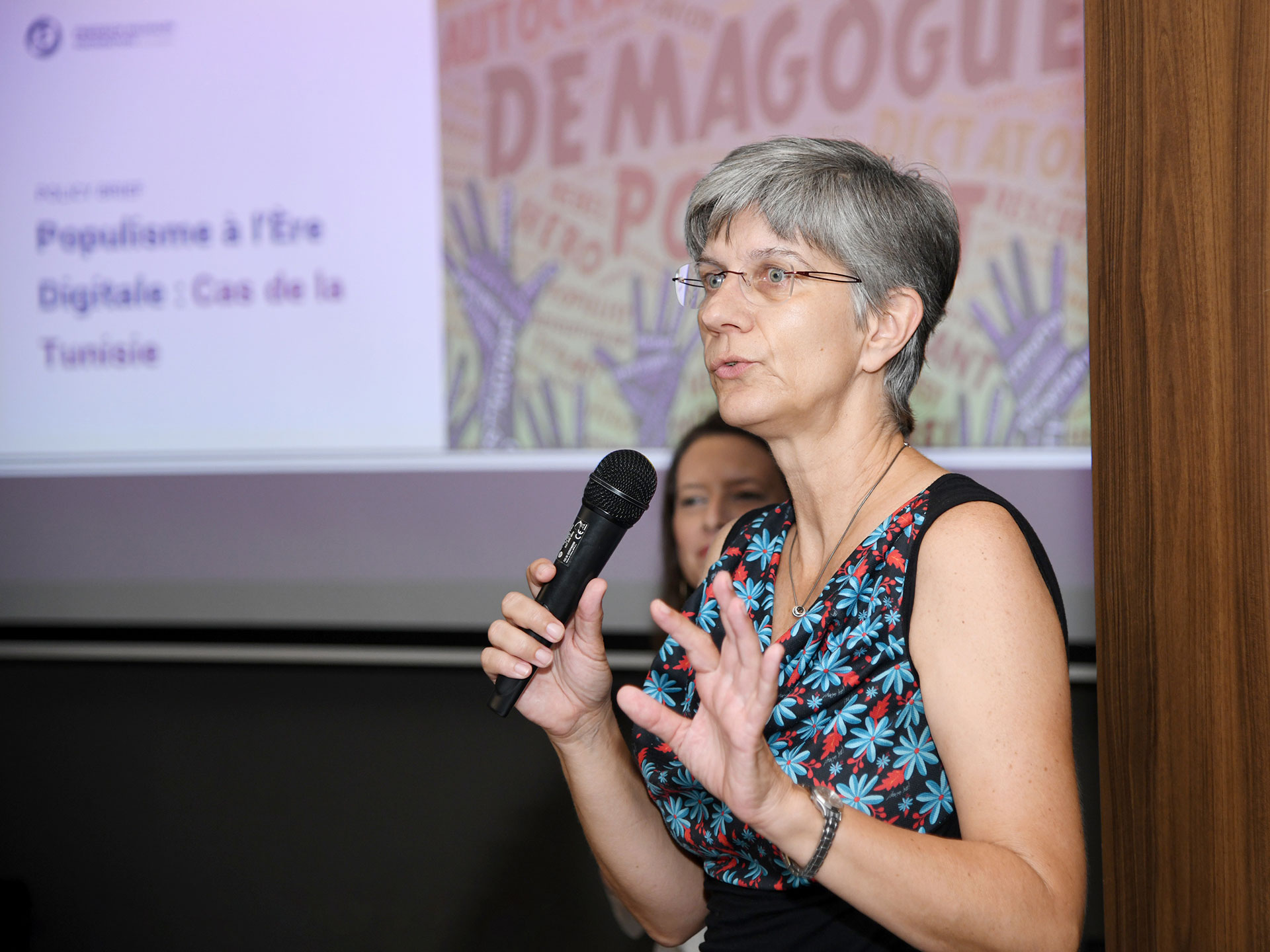 Hanene, die 2019 von der Friedrich-Naumann-Stiftung für die Freiheit mit dem Raif Badawi Award for Courageous Journalists ausgezeichnet wurde, präsentierte eine kritische Analyse, wie sich der politische Diskurs und die institutionellen Dynamiken Tunesiens in den letzten Jahren entwickelt haben. Ihre Forschung ordnet den Aufstieg des Populismus in Tunesien in einen breiteren globalen Trend ein, betont jedoch zugleich den spezifischen historischen, sozialen und technologischen Kontext des Landes.