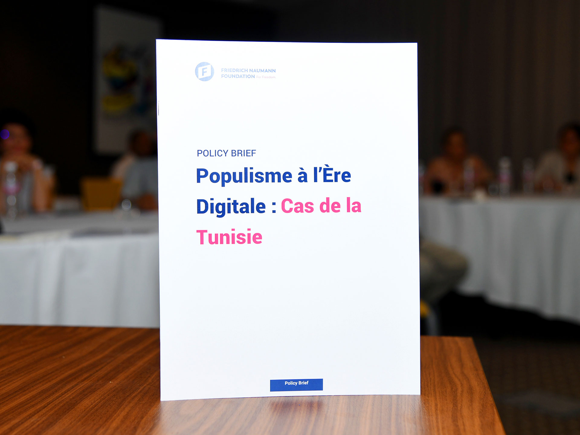 Am 23. Juli 2025 veranstaltete die FNF Tunesien eine öffentliche Präsentation des Policy Papers „Populismus im digitalen Zeitalter: Der Fall Tunesien“ (“Populism in the Digital Age: The Case of Tunisia”), verfasst von Hanene Zbiss, unabhängige Journalistin und Präsidentin der tunesischen Sektion der Union de la Presse Francophone (UPF). Die Veranstaltung fand in Tunis statt und brachte Journalistinnen und Journalisten, Juristinnen und Juristen, Wissenschaftlerinnen und Wissenschaftler sowie zivilgesellschaftliche Akteurinnen und Akteure, die sich für Meinungsfreiheit und demokratische Regierungsführung einsetzen, zusammen.