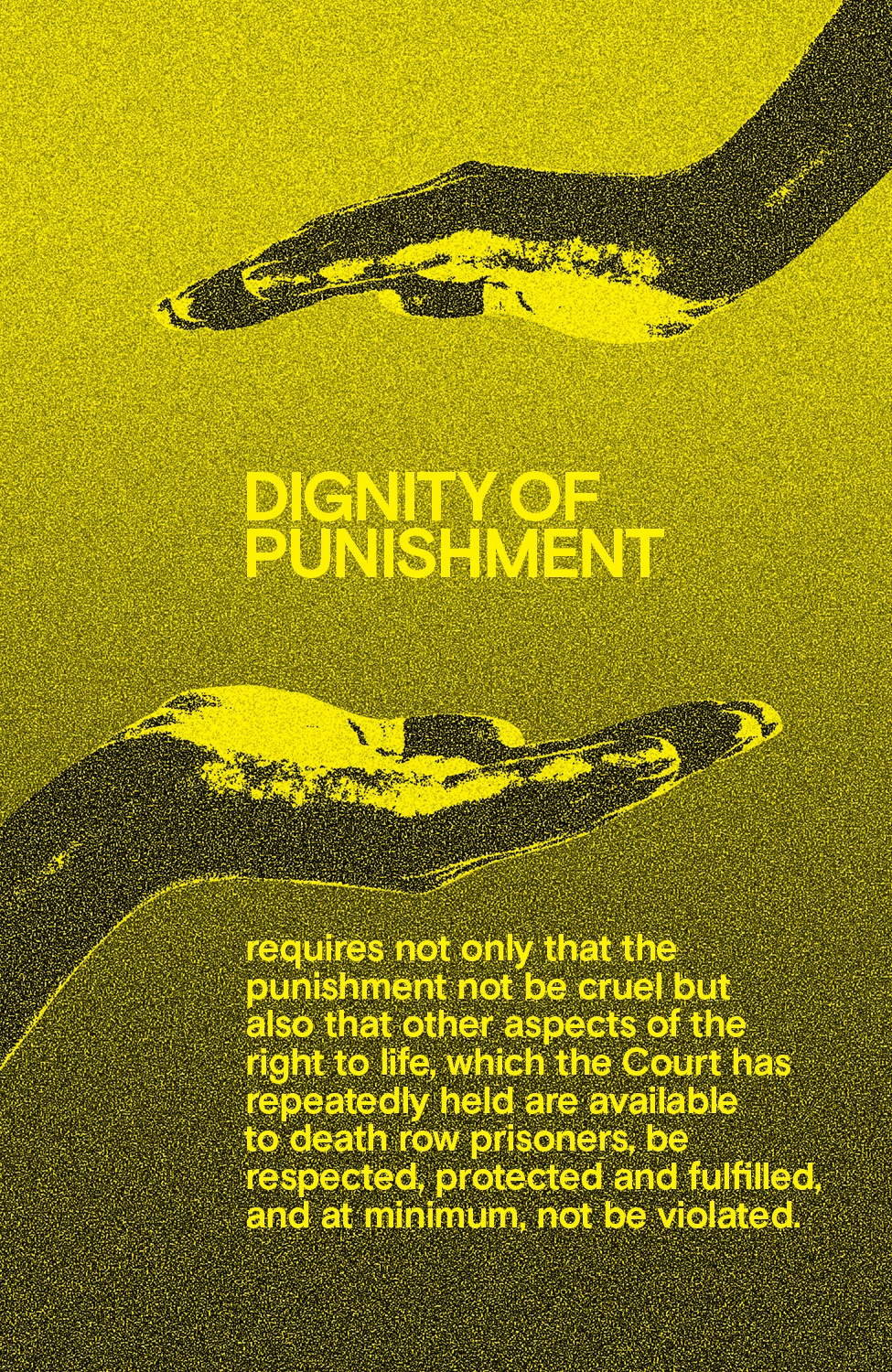 Легко отождествлять преступников с их преступлениями. Возможные причины, по которым они совершили преступления, не должны их ни оправдывать, ни освобождать от ответственности. Тем не менее Конвенция Организации Объединенных Наций против пыток (КПП), которую Индия подписала, но еще не ратифицировала, требует, чтобы при вынесении приговора учитывались уважение к человеку, индивидуальный жизненный опыт, а также психические и психологические ограничения. Заключенных, приговоренных к смертной казни, нельзя унижать, к ним следует относиться как к людям и обращаться с ними соответствующим образом.
