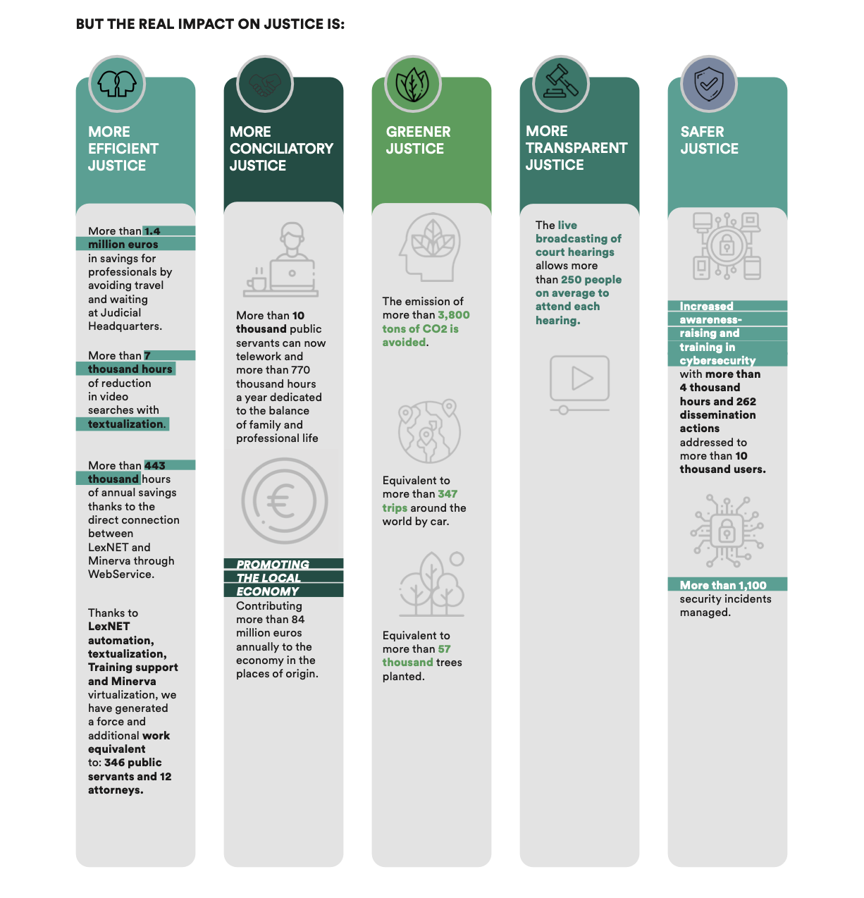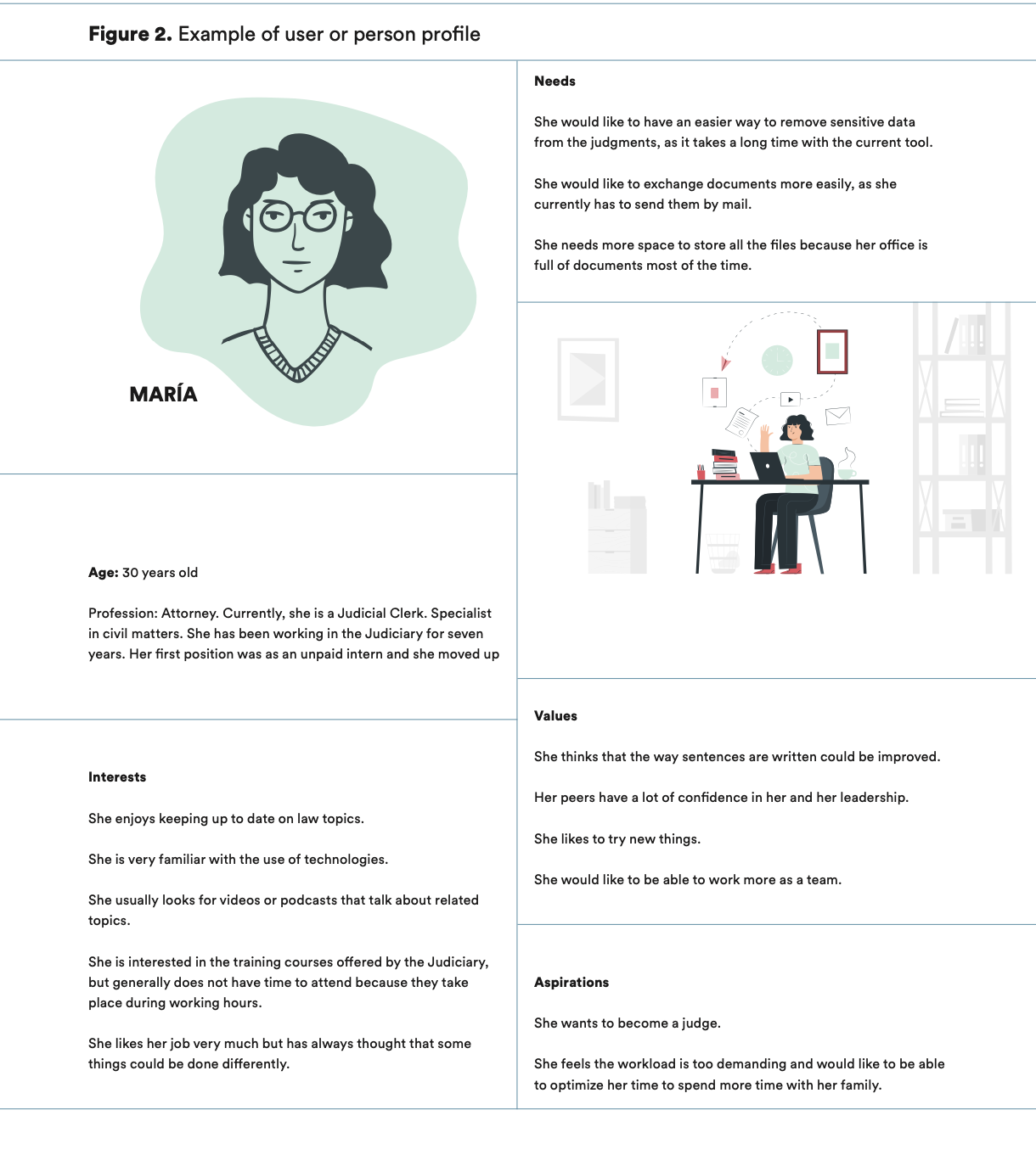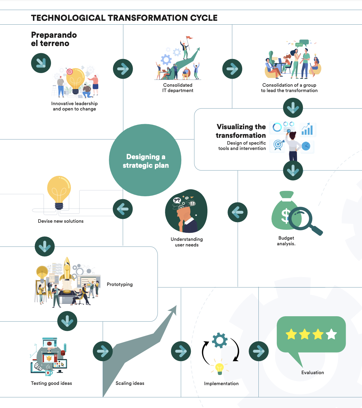 «Руководство по технологическому преобразованию в сфере осуществления правосудия» устанавливает, что цифровые инструменты должны предлагать решения, выходящие за рамки автоматизации или тиражирования существующих процессов; эти новые процедуры должны изменить структуру и исполнение указанных процедур. Для этого требуется открытое, инновационное и стратегическое лидерство, а также поддержка различных ключевых заинтересованных сторон, таких как объединенные отделы инноваций и технологий, судебные и административные должностные лица, законодатели, общественные деятели и юристы, которые могут предложить различные точки зрения..